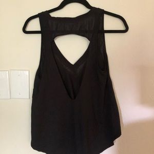 This is a size Large, but I am an extra small and wore it haha ! No stains rips or tears. Very good quality and very flattering. Wore as a tankini top or workout top.