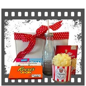 Movie Night Gift Box with Glass Coca Cola Bottles w/straw