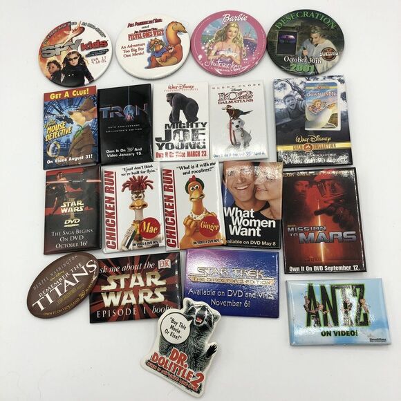 Movie Pins Buttons Pinback Disney Dreamworks Paramount Collectable Promo Vtg Lot