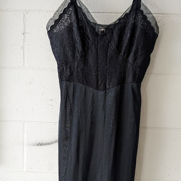 Movie Star Black Nylon Full Slip Dress Womens With Lace Detail Vintage