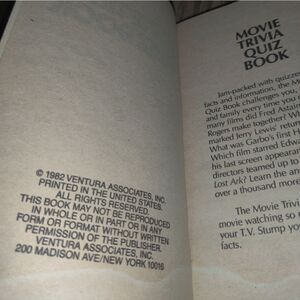 Movie Trivia Quiz Book VTG 1982 Ventura Associates Paperback. Has some wear from age and storage. Sold as is.