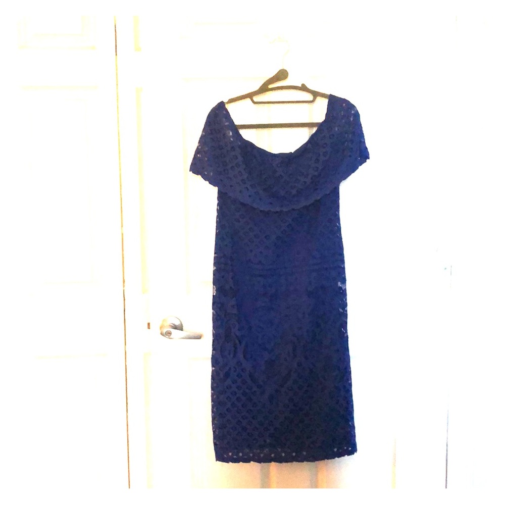 Off shoulder , royal blue , crochet, midi dress