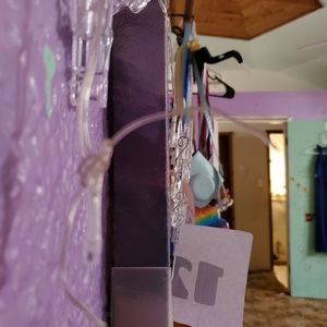 Nice panting. There are slots that are clear so u can hold pictures in it. Bose good with a purple room. Just like mine. If you thank so I will got done one the price.