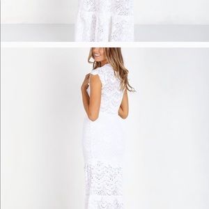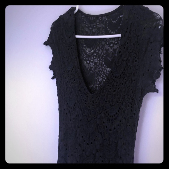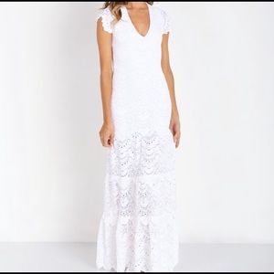 Nightcap grey stretch lace v neck with cap sleeves and tiered maxi dress.