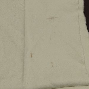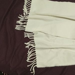 Cream colored scarf measures 12" x 60" plus fringe. Thick and Very Soft. Not sure of the material, no tags.