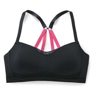 Powerhouse sports bra features contoured cups and an innovative stretch strap design. DriLayer Adapt® straps stretch for a custom fit. Features: Bonded hems. Semi-contoured unicup design. Soft, brushed bottom stretch band. Back J-hook cushioned closure. Self: 85% polyester, 15% spandex. Lining: 79% polyester, 21% spandex. Cups: 100% polyester.