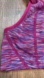 High impact, nice and supportive racerback sport bra with adjustable straps and three hooks of setting in the back. No padding.
