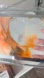 Dynamic quicksand painting with a stand. Features shades of orange, black, and cream.