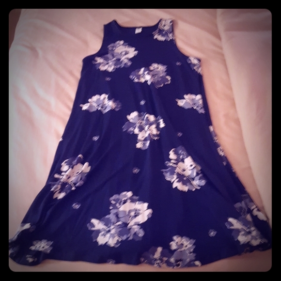 Never wore royal blue with flower patterns, super soft, flowing dress