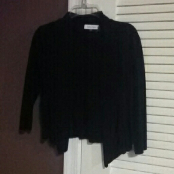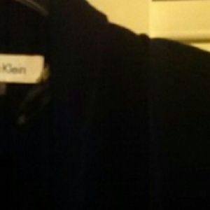 Black Calvin Klein sweater. Very soft, has textured stripes along neckline and and foldover collar.