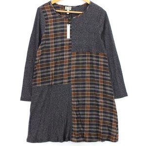 Mo:vint Anthropologie Dress Tunic Womens Gray Plaid Pullover Long Sleeve Small S