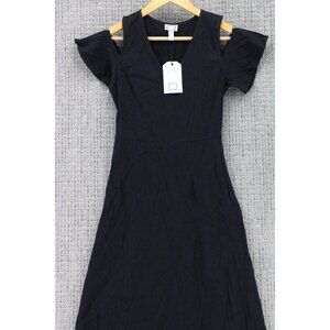 Mo:vint By Anthropologie Fit & Flare Dress Women XS Black Solid Short Sleeve NWT