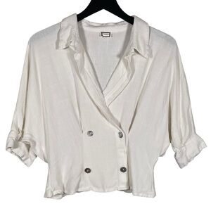 Mo:vint Ivory Linen Cotton Double Breasted Top S/M