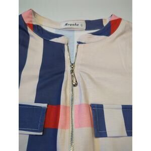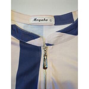 Moyabo Long sleeve QTR zip Color Block Mandarin Collar Cream Blue Pink Size L