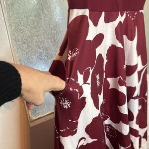 Moyabo Women’s Dark Red and White Floral Knee Length Criss Cross Neckline M
