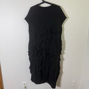 Moyuru Japan Art to Wear Oversized Tiered Black Short Sleeve Midi Dress Small
