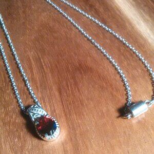 Mozambique Garnet Stainless Steel Pendant Necklace