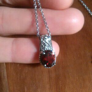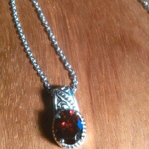 This solitaire pendant necklace features the gemstone Mozambique garnet. The pendant and necklace chain are set in stainless steel. 2.10 ctw. Brand new.