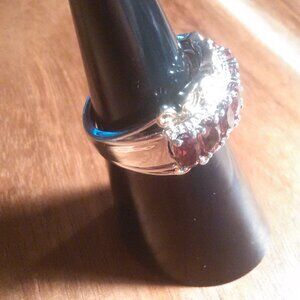 Mozambique Garnet and White Zircon Brass Ring (Size 5)