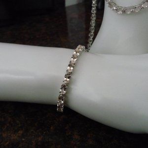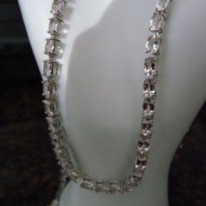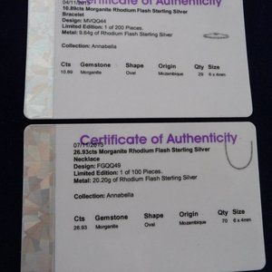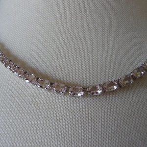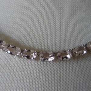 Super feminine, delicate pink, glowing Morganite. Tennis style. Necklace: 18ins (70, 6 x 4mm oval stones @ 26.93cts). Bracelet: 7ins (29, 6 x 4mm oval stones @ 10.89cts). Rhodium over sterling silver metal. Comes with certificate of authenticity. Unworn. Would make lovely bridal set.