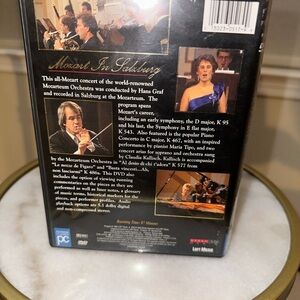 Experience the magic of Mozart with this DVD. Features symphonies and concert arias. The item pictured is a DVD titled Mozart in Salzburg, featuring the Mozarteum Orchestra conducted by Hans Graf. It includes performances of several of Mozart's compositions: