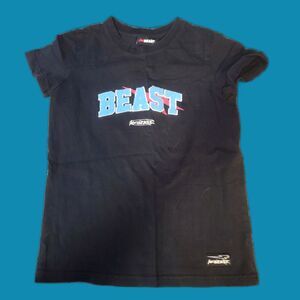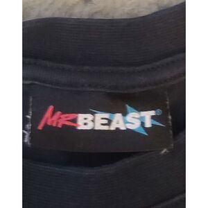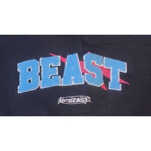 Mr. BEAST Youth Black Short Sleeve T-Shirt Raised 3D Blue Fuzzy Letters Size 12