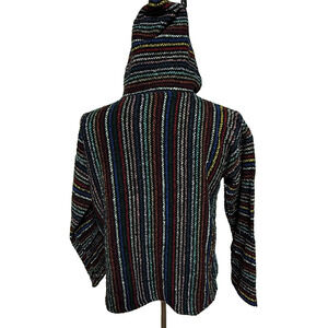 Mr Baja Drug Rug Hoodie Mens Medium Black Rainbow Tapestry Colorful Hippie Boho