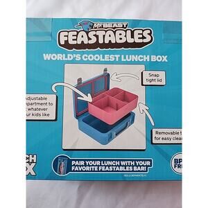 Mr Beast Feastables Lunch Box Blue Adjustable Compartment Snap Lid