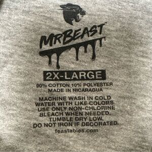 Mr. Beast Feastables T-Shirt In Light Gray Size 2-XL 90% Cotton 10% Polyester Excellent Condition