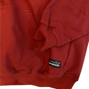 MrBeast official private label red hoodie in size small. Made from 100% cotton with a soft, mid-weight feel and the bold MrBeast logo across the chest. Features a front kangaroo pocket and ribbed cuffs and hem for a classic fit. Excellent like-new condition with no flaws.