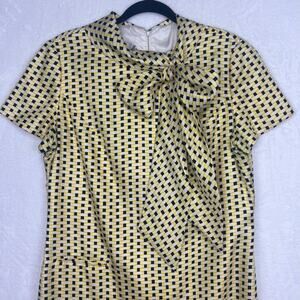 Mr. Blackwell Design Vintage 50/60s Shift Dress Yellow Navy Geometric Print XL