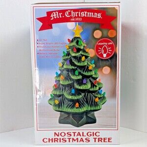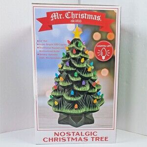 Mr. Christmas 14 inch Multicolor Light Up Green Nostalgic Ceramic Christmas Tree