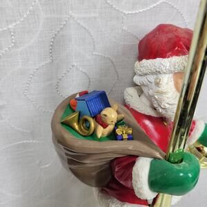 Santa is perched on a golden finial, holding a glowing lantern and carrying a toy sack full of cheer. This piece captures that timeless Mr. Christmas charm with classic red-and-gold coloring, high-gloss finish, and vintage-inspired animation.