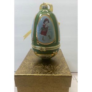 Mr Christmas Musical Egg Shaped Ornament Green Trinket Box Valerie Parr Hill