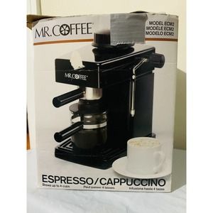 You are looking at a gently used and clean Mr. Coffee Espresso Cappuccino Maker Black Model ECM2 Makes 4 Cups Tested. Item is sold as pictured. Ships first class mail.