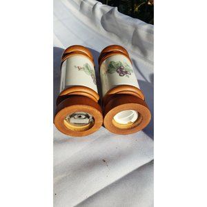 Mr Dudley 7" Wood & Ceramic Pepper Grinder Mill & Salt Shaker Set Grapes. Good Condition