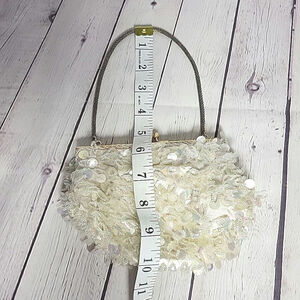 Mr Ernest Evening Hand Bag White Vintage Beaded & Sequins Purse Madein Hong Kong