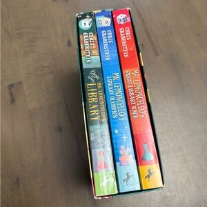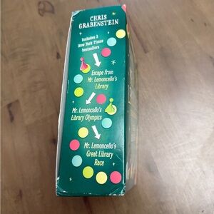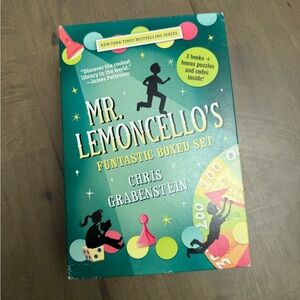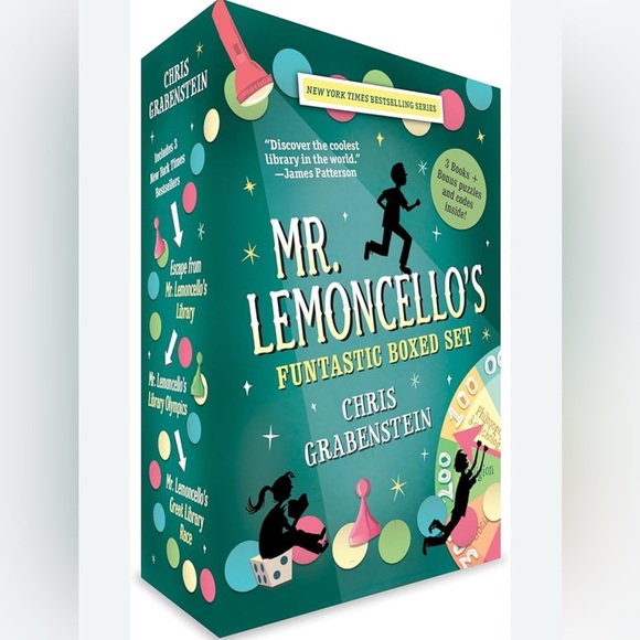 Mr. Lemoncello's Funtastic Boxed Set by Chris Grabenstein. Includes 3 books with puzzles inside. Vibrant green and blue cover with playful illustrations.