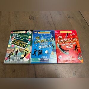 A three-book series where kids solve puzzles and compete in library challenges created by game maker Luigi Lemoncello, including library escape rooms, Olympics, and cross-country races.