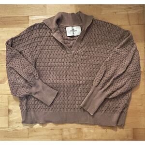 Mr Mittens Lace Polo Pointelle Sweater Almond Grey Tan Collared S/XS