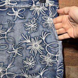 🌻 Mür Mür Embroidered Floral Denim Women's Shorts size Large Boho Anthropologie