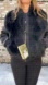 Long sleeve nylon and lambskin shearling bomber jacket in black.