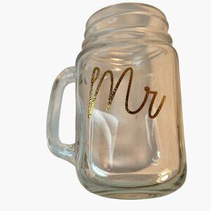 Mr Mrs Mason Jar Mugs Gold Script Writing Wedding Gift Anniversary Lot 2