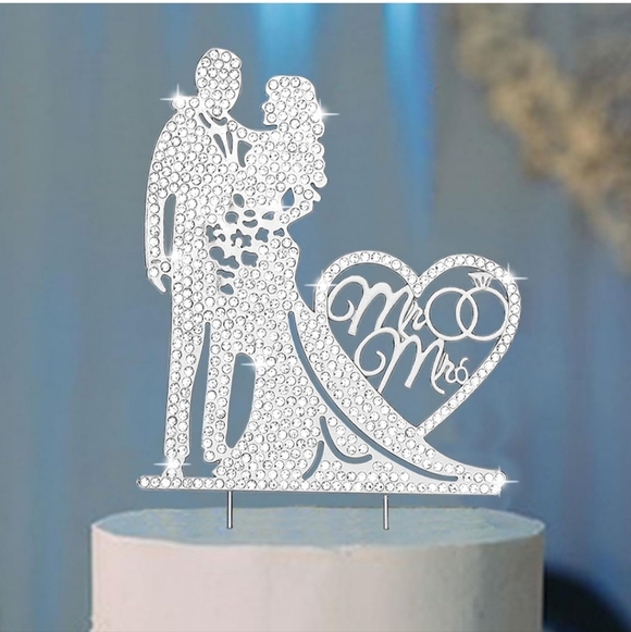 * Elegant and Luxurious: This silver rhinestone wedding cake topper adds a touch of elegance and luxury to any occasion.