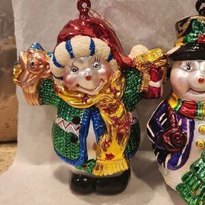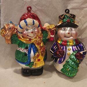This is a set of 2 large Mr. & Mrs. Snowman glass blown Christmas ornaments.