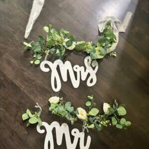 Mr & Mrs Sweetheart Table Wedding Chair Decor with Faux Greenery & Flowers