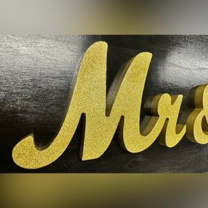 This is a wood/poly mix with Gold glitter on the front. It’s a table top sign. Size in pix, was used once.