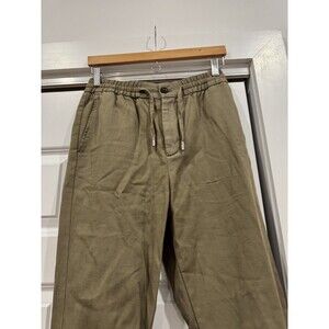 Mr P Porter Mens 30 Olive Cotton Linen Twill Drawstring Straight Pants Casual
