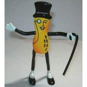 Original new old stock vintage Mr Peanut rubber bendable figure. 6" size. Pose him in anyway you like. Great vintage item makes a super cool gift. Marked Planters Lifesavers on back.