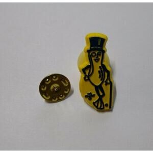 New old stock vintage Planters Mr Peanut hard plastic lapel pin. Circa 1970s-1980s. Size is 1". Comes with the original plastic backing and better metal one. The plastic one does not work well and can damage the back pin. The extra gold metal one is recommended.